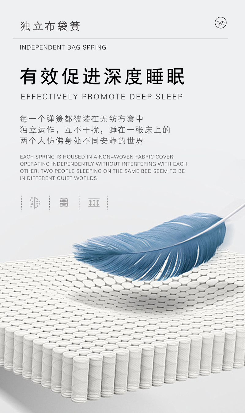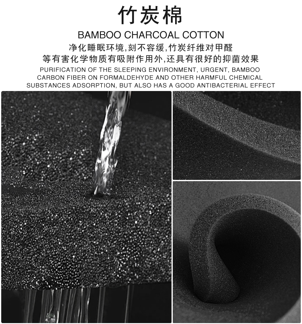 填充物: 无胶棉 ,3cm高密海绵上 ,2cm竹炭棉 ,450g硬质棉上 ,独立布袋簧 ,四周防撞系统 ,450g硬质棉下 ,柔软海绵 ,透气4D布Non-glue cotton , , , Pocket springs Perimeter collision avoidance system , Soft sponge Breathable 4D fabric